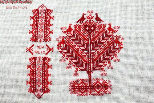 Ниже представлены фотографии готовых работ с рисунком древо жизни в узорах вышивки: