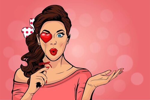 1. Рисунок поп арт брюнетка с ярким макияжем