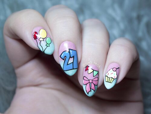 Одной из популярных тем для рисунков на ногтях на день рождения является символика этого праздника. Вы можете выбрать рисунки с изображением торта, шариков, подарков или цифры, соответствующей вашему возрасту. Это отличный способ подчеркнуть тематику и создать веселый и праздничный образ.