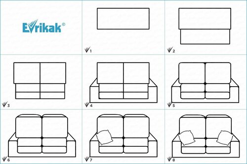 От каждого края прямоугольника нарисуйте две вертикальные линии, чтобы создать подлокотники дивана. Подлокотники могут быть разных размеров и форм, позвольте вашей фантазии работать!