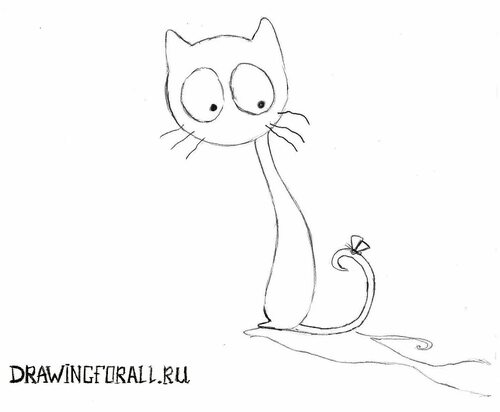 Для создания эффекта шерсти используйте короткие и небольшие штрихи карандашом. Прорисуйте шерсть на туловище и лапах. Затем добавьте детали лица - прорисуйте глаза, уши и усы котика.