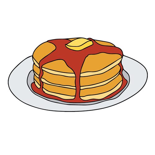 Теперь пришло время добавить декорации к панкейку. Нарисуйте вокруг него сироп или шоколадные капли. Можете добавить взбитые сливки и ягоды для дополнительного эффекта.