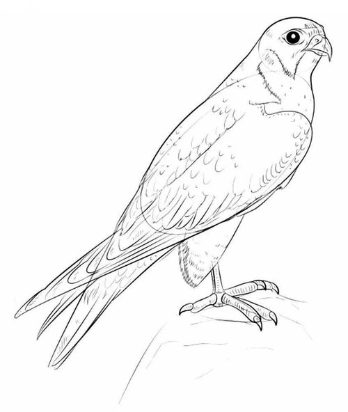 8. Завершите рисунок, добавив дополнительные детали и выделите контуры сапсана.