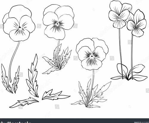 Как создать контурный рисунок "Анютины глазки"?