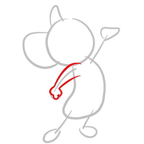 После этого нарисуйте тело Джерри, используя прямоугольник с закругленными углами. Не забудьте нарисовать четыре короткие ножки, придавая им плавные изгибы. Голова и тело Джерри готовы!