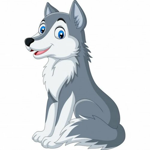 Стиль №2: Карикатурный рисунок. Изобразите волка в упрощенной и смешной форме, подчеркнув его особенности и характерные черты.
