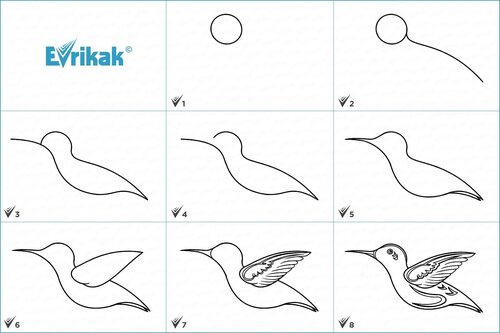 Начните с насечки, обозначающей голову птицы. Затем добавьте форму тела и хвоста. Используйте легкие штрихи, чтобы можно было легко стереть их, если потребуется внести исправления.