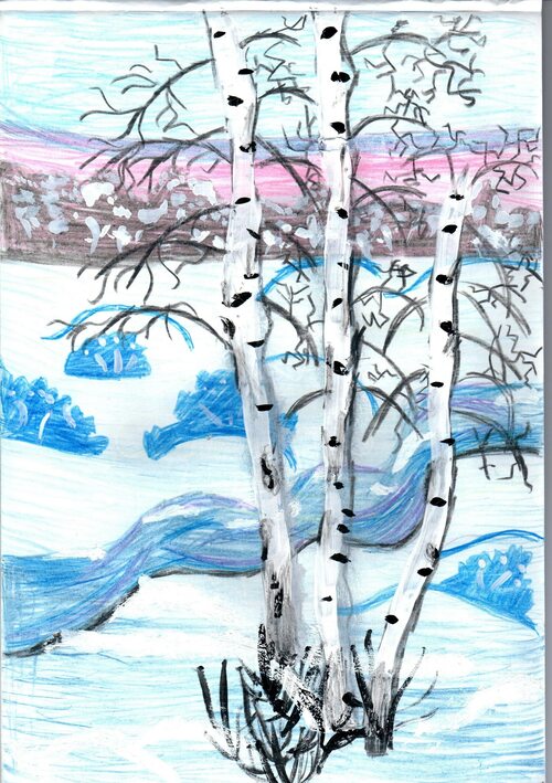 Вдохновитесь творчеством других детей, которые нарисовали зимние березы. Они использовали разные техники и цветовые решения, чтобы передать красоту зимней природы.