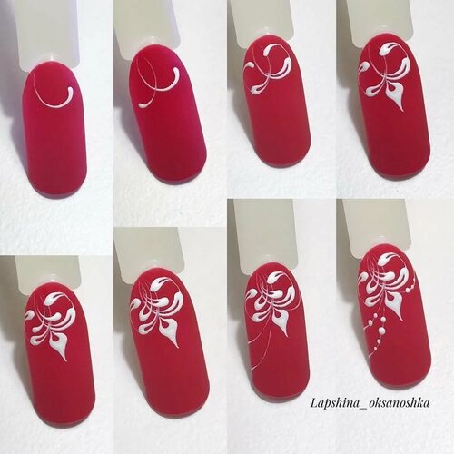 Ниже представлены некоторые идеи для рисунков на красных ногтях: