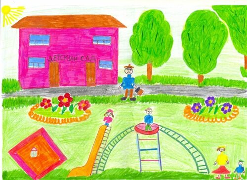 В детском садике дети находят новых друзей и общаются с воспитателями. Рисунки на эту тему позволят ребенку выразить свою благодарность и привязанность к своим друзьям и педагогам. Он может нарисовать себя в окружении своих любимых людей, смеющихся и играющих вместе.