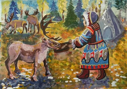 Дети хантов начинают заниматься рисованием с самого раннего возраста. Они изучают традиционные символы и мотивы, которые отражают мифологию и верования этого народа. Рисунки детей часто включают изображения животных, птиц, рыбы и лесных пейзажей, которые являются важными элементами их культуры.