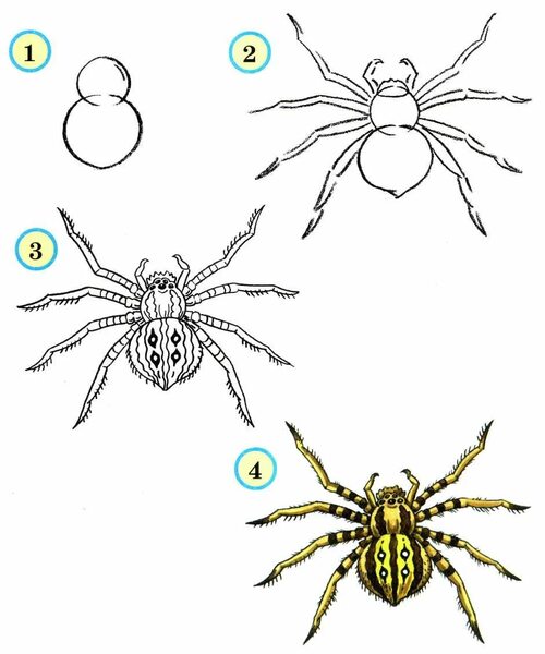 Поздравляю! Вы только что научились рисовать паука поэтапно. Теперь у вас есть прекрасный рисунок, который вы можете показать своим друзьям и семье. Не забудьте подписать своё произведение и оставить место для даты!