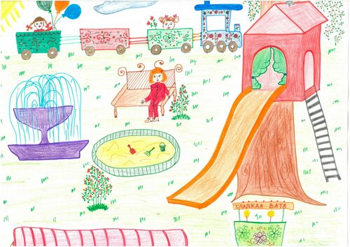 После того, как основа и детали нарисованы, дайте детям возможность оживить свою детскую площадку при помощи цветов. Пусть они выбирают насыщенные и яркие оттенки, чтобы создать веселую атмосферу.