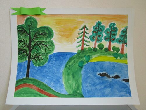 Следующий рисунок приглашает нас в увлекательное путешествие по природным красотам нашей страны. Здесь мы видим изображение гор, рек, озер и лесов, которые являются визитной карточкой нашей родины. Ребенок смог передать атмосферу и красоту природы через свои рисунки, вдохновив нас на походы и знакомство с удивительными местами.