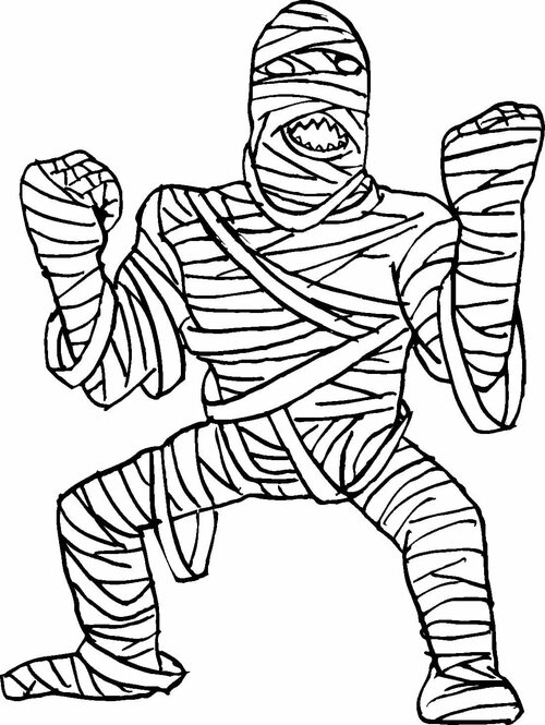 Эта мумия представляет собой страшного монстра с острыми зубами и огромными глазами. Ребенок использовал яркие цвета и необычные формы, чтобы создать ужасающий образ.