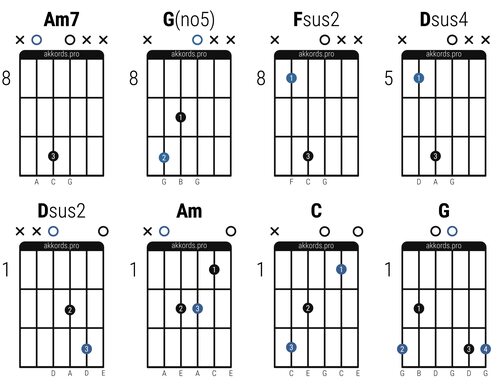 Рисунки грифа для аккордов сансара