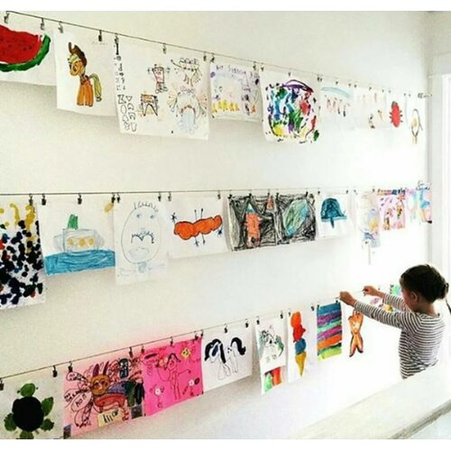Чтобы вам было легче представить, как могут выглядеть развешенные детские рисунки, мы подготовили для вас фотографии с разными вариантами оформления. Посмотрите их ниже: