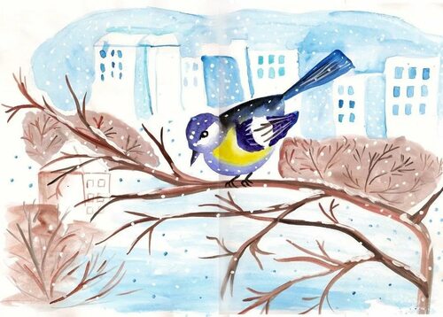 Прежде чем начать рисовать, предлагаю совершить небольшую прогулку с вашим ребенком и наблюдать за птицами в зимних условиях. Обратите внимание на их форму, окраску и особенности поведения. Вдохновитесь красотой и элегантностью птичьего мира!