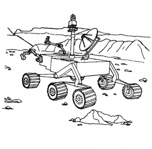 На этой раскраске луноход сопровождается космическим кораблем, который приземляется на поверхность Луны. Ты можешь вообразить себя астронавтом и рассмотреть все детали этой удивительной сцены.