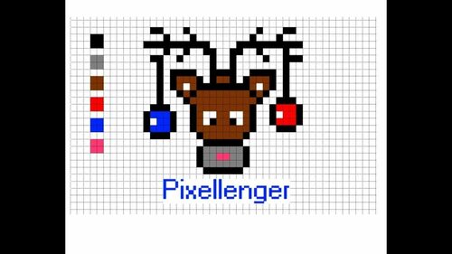 Этот рисунок отлично подойдет для создания новогодних открыток. Нарисуйте оленя, у которого на спине лежат подарки. Используйте клеточки, чтобы создать детали оленьей головы и рогов. Затем добавьте подарки с помощью ярких цветов. Ваша открытка будет выглядеть очень празднично!