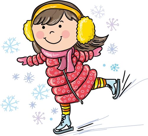 1. Пейзаж зимнего парка: пушистые снежинки, деревья украшенные инеем и, конечно же, дети, катающиеся на коньках. Возьмите цветные карандаши или акварельные краски и попросите ребенка создать свой уникальный зимний пейзаж.