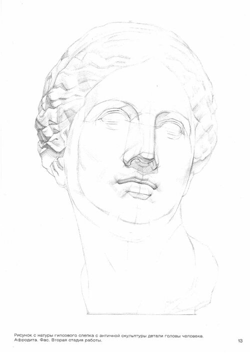 Обратите внимание на освещение на фотографии головы Афродиты и попытайтесь передать его в своем рисунке. Тени и светотени помогут придать голове объем и глубину.