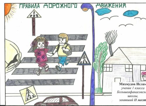 На рисунке вы можете увидеть, как ребенок переходит дорогу только на пешеходном переходе. Это очень важное правило, которое помогает избежать опасности и уменьшить риск ДТП. Ребенку следует научиться выбирать безопасные места для перехода дороги и всегда использовать пешеходные переходы, где это возможно.