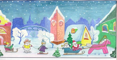 Улица Ленина – это одна из главных и самых красивых улиц в Самаре. К Новому году она становится еще ярче и оживленнее. На рисунках можно увидеть украшения, фонари и многочисленных гостей, наслаждающихся прогулкой по улице.