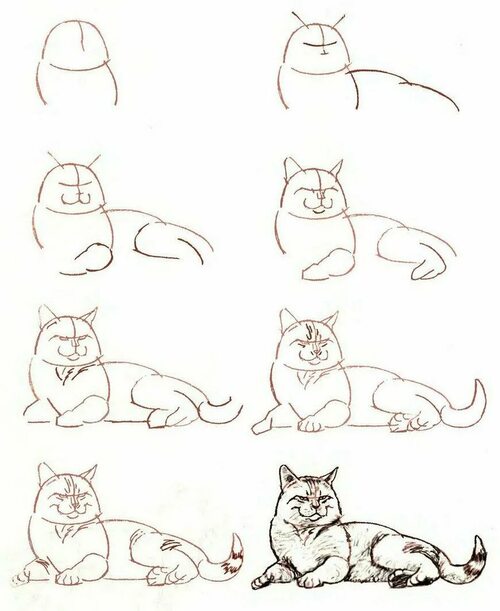 После того, как вы добавили детали лица и ушей, обведите контуры туловища и лап. Подчеркните грациозные изгибы кошачьего тела.