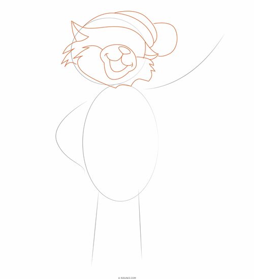 Продолжаем рисовать кота, нарисовав овал внизу головы - это будет его тело. Добавьте четыре лапки - две спереди и две сзади.