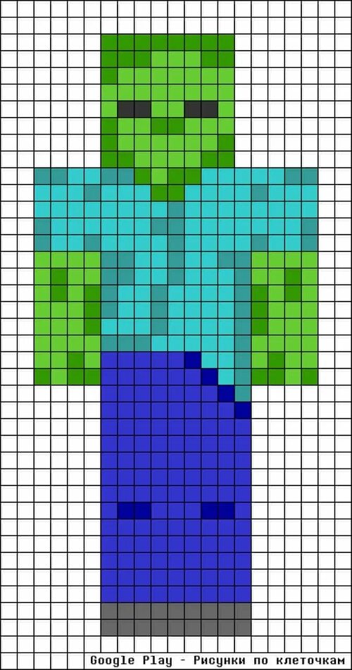 Примеры рисунков по клеточкам в стиле Майнкрафт