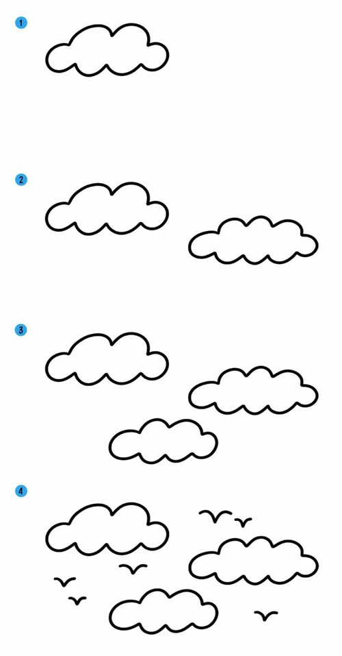 Чтобы создать реалистичное небо, добавьте облака. Возьмите белую краску и кисть. Сделайте несколько маленьких, пушистых облаков, используя легкие круговые движения кисти. Постепенно добавляйте больше облаков, создавая интересные формы и текстуры.