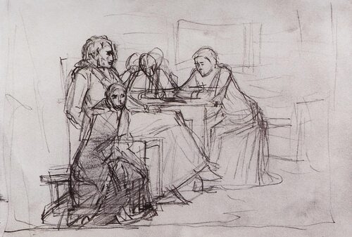 Эскиз позволяет художнику планировать и исследовать различные варианты композиции и расположения элементов на холсте или бумаге. Он помогает определить пропорции, ракурс, освещение и общую атмосферу произведения.