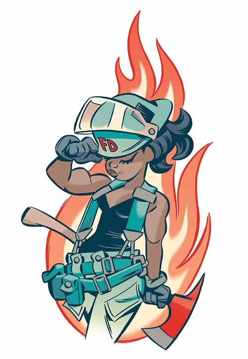 На этой иллюстрации изображен персонаж, который показывает, как правильно использовать огнетушитель. Это напомнит детям, что огнетушитель - важный инструмент и его нужно использовать только в случае пожара, следуя инструкциям и правилам безопасности.