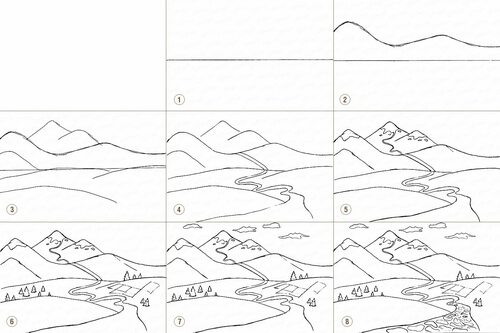 1. Начните с наброска контуров гор. Используйте легкий карандаш, чтобы можно было легко стереть ненужные линии.