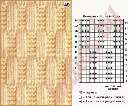 Квадратный узор - еще один простой и эффектный рисунок для шарфа. Он создается путем чередования лицевых и изнаночных петель в определенном порядке. Вот пример квадратного узора: