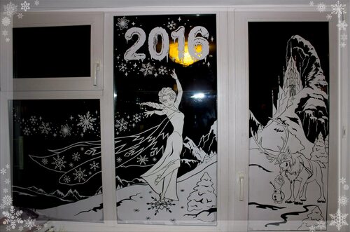 Использование трафаретов при рисовании на окнах имеет ряд преимуществ:
