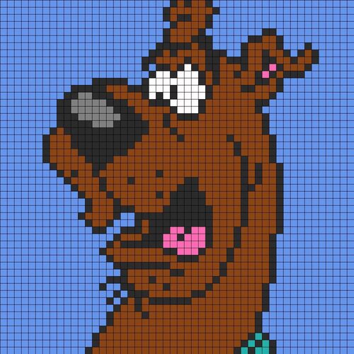 Ниже представлены фотографии рисунков по клеточкам Скуби Ду анимешный. Ваш ребенок может выбрать любой из них и начать заполнять клеточки нужными цветами, следуя образцу.