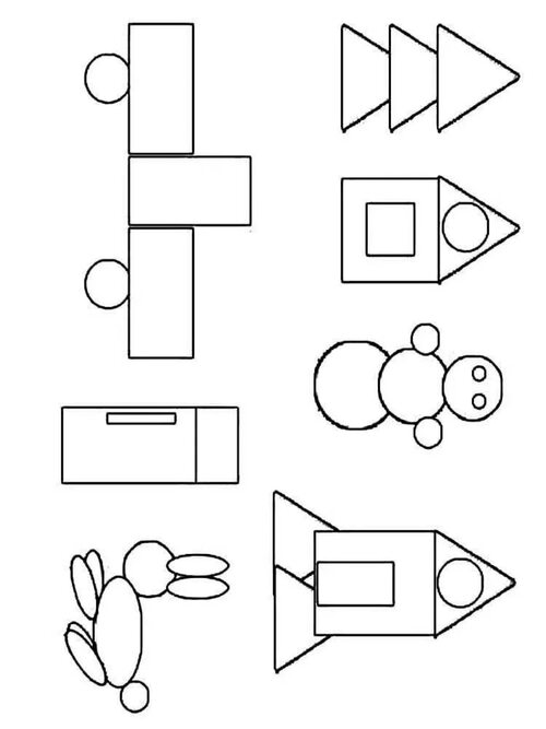 Теперь пришло время создавать рисунки из прямоугольников. Предложите ребенку использовать прямоугольники, чтобы нарисовать различные предметы, животных или сказочных персонажей. Он может соединять прямоугольники или ставить их рядом, чтобы создать нужную форму. Воображение ребенка будет ключевым фактором в этом этапе.