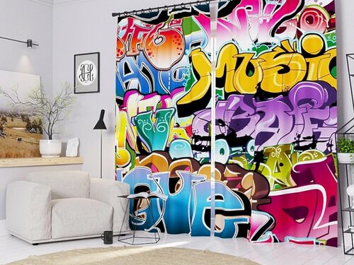 Ниже представлены фотографии штор с граффити рисунком, которые помогут вам найти идеальный дизайн для вашего интерьера.
