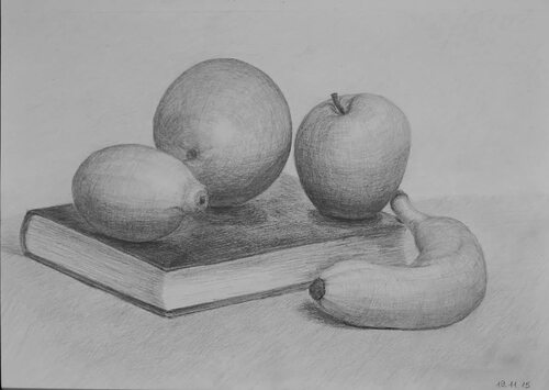 Когда вы закончите рисовать все объекты натюрморта, оцените результат. Если необходимо, внесите небольшие корректировки или доработайте некоторые детали. Не забывайте подписать свой рисунок, чтобы отметить свое авторство.