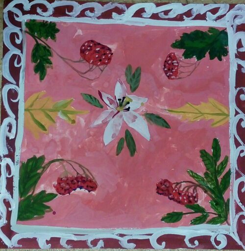 На этом фото вы увидите платок с яркими цветами, нарисованными ребенком. Цветы создают атмосферу радости и красоты.
