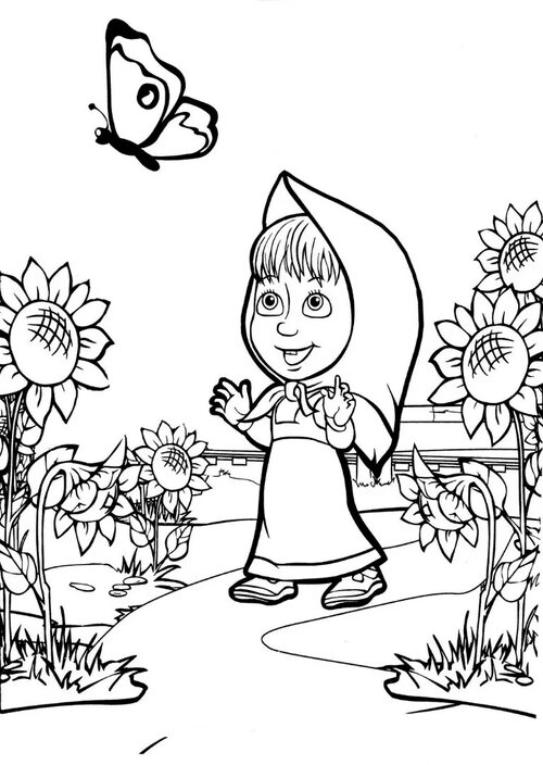 Вам предоставлены различные рисунки Маши. Выберите понравившийся и начинайте раскрашивать!