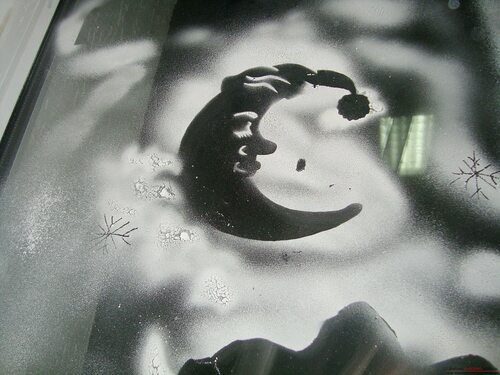 Ниже представлены фотографии некоторых работ, выполненных с использованием зубной пасты на стекле с трафаретами: