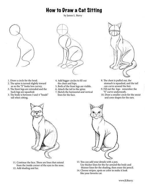 Этапы создания рисунка сидящей кошки: