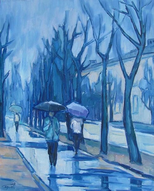 2. Зонтики в дождливом городе. Предложите ребенку нарисовать людей, которые идут под зонтиками, защищая себя от дождя. Он может добавить яркие цвета и улыбки, чтобы создать веселую и позитивную атмосферу.