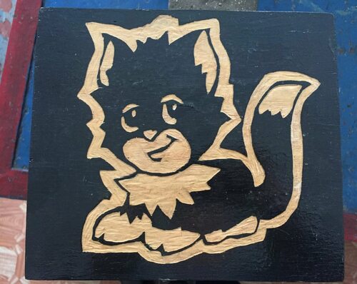 Предложите ребенку нарисовать контур изображения своего любимого животного на фанере. Затем окрасьте рисунок, используя яркие цвета и подчеркивая детали.