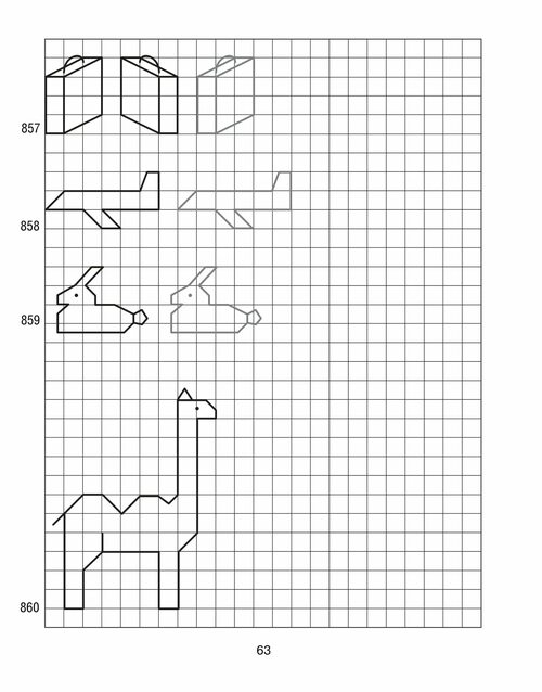 Ниже приведены некоторые примеры рисунков по клеточкам в тетради с легкими животными: