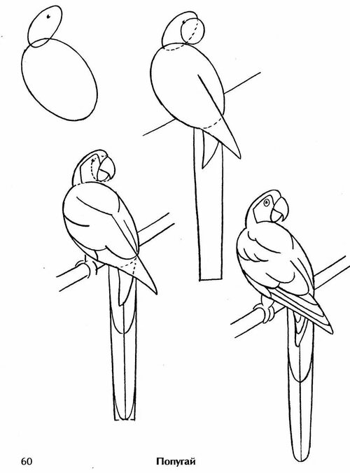 Выберите лист бумаги или холста и нарисуйте круглую голову попугая. Затем добавьте длинную шею и туловище. Не забудьте нарисовать крылья и хвост.