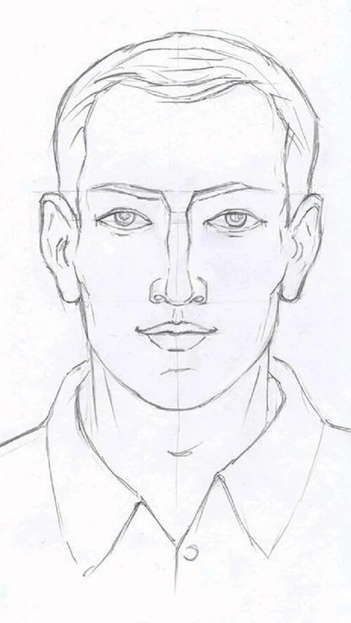 После того, как вы определились с образом, начните с создания основы портрета. Нарисуйте овал, который будет выступать в качестве головы мужчины. Затем добавьте линии для обозначения глаз, носа и рта. Не забудьте про уши и волосы.